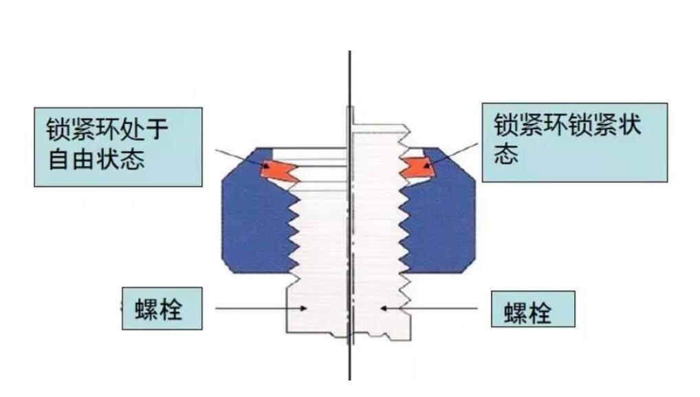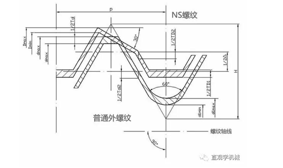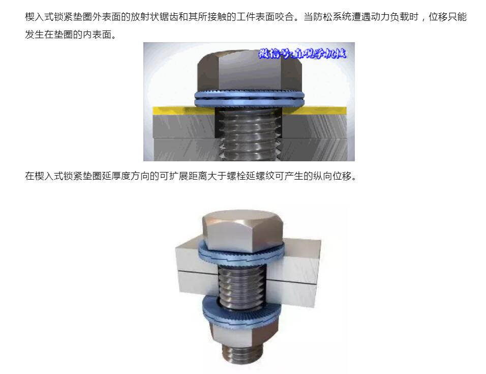 由于牙形的角度改變,使施加在螺紋間接觸所產(chǎn)生的法向力與螺栓軸成60度角,而不是像普通螺紋那樣的30度角。顯然30°楔形螺紋法向壓力遠(yuǎn)遠(yuǎn)大于扣緊壓力,因此,所產(chǎn)生的防松摩擦力也就必然大大增加了。