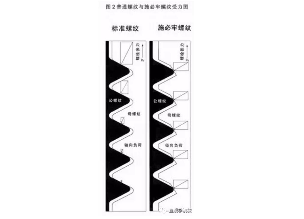 這樣,30°楔形螺紋與傳統(tǒng)60度螺紋,二者的法向壓力之比≈12∶7,防松摩擦力相應(yīng)地增加了。30°楔形螺紋的楔形面還可以消除普通螺紋受力不均勻、脫扣咬死等問題。