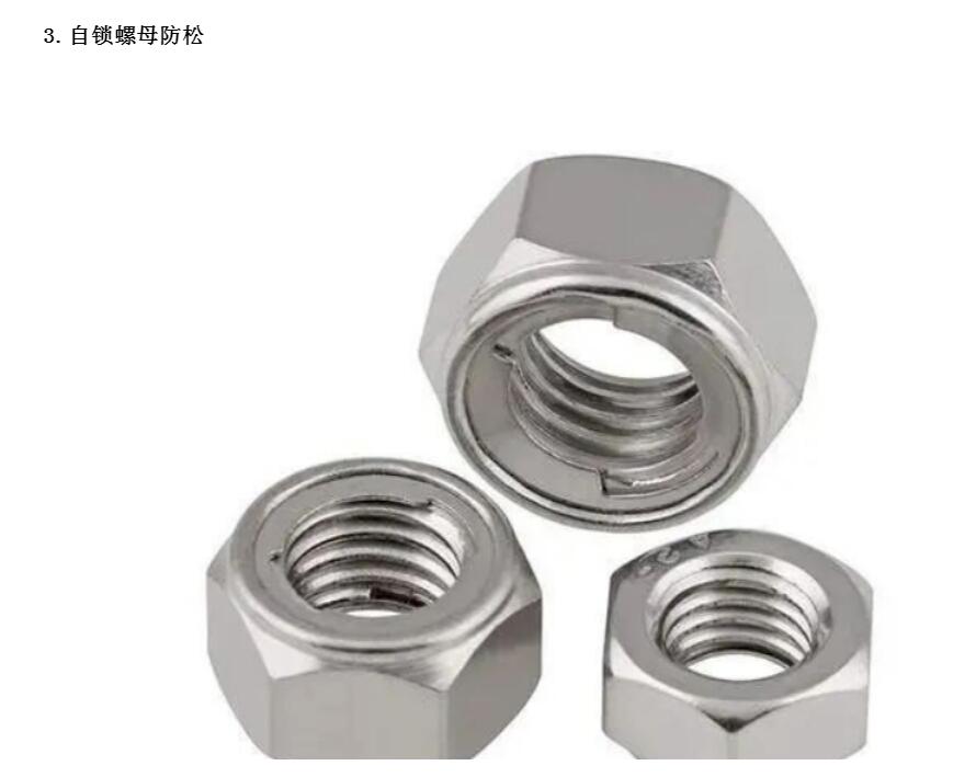 螺栓常用的防松方法有三種:摩擦防松、機械防松和永久防松。機械防松和摩擦防松為可拆卸防松,而永久防松稱為不可拆卸防松。常用的螺母防松方法有三種:摩擦防松、機械防松和永久防松。