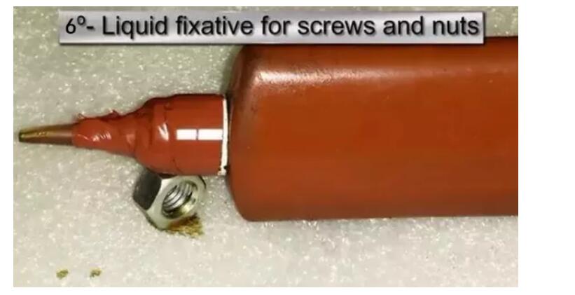 將螺母防松液涂抹在螺栓擰緊處,再擰上螺母,自行固化后,防松效果良好。