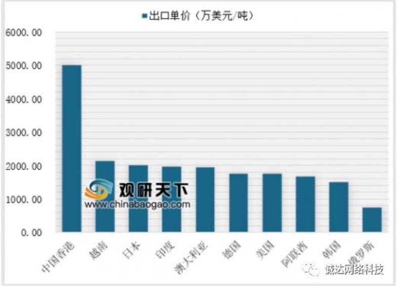 4、緊固件產品出口平均單價均有上漲。2018年,出口額占比99.26%的鋼制緊固件平均單價1472美元/噸,同比增長21.35%;銅制緊固件出口平均單價9956美元/噸,同比增長13.27%;鋁制緊固件出口平均單價3205美元/噸,同比增長9.61%。